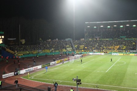 Uli Hoeneß hat einmal sehr frustriert und uninformiert einen Stimmungsboykott kritisiert mit einer Bemerkung in die Richtung „Was wollen sie denn jetzt schon wieder? Beheizte Sitzplätze?“. Dass er dies nicht ernst gemeint hatte, ist klar. Ihm dürfte jedoch kaum bewusst gewesen sein, wie weit weg von der Realität seine sarkastische Einlage eigentlich war. Es mag durchaus sein, dass eine Tribüne über dem Kopf auf die Dauer ganz angenehm ist, sicher in einem eher regnerischen Land wie Deutschland und einer Liga, die normalerweise die einzigen drei Monate im Jahr ruht, in denen das Wetter zum Draußen sein einlädt. Dennoch sehnen sich Fußballfans im Allgemeinen eher danach, das ursprüngliche Erlebnis zu konservieren und ich habe keinen einzigen der gut 3.000 BVB-Fans, die sich damals im Dezember 2013 im Ludwigspark zu Saarbrücken den Arsch abgefroren haben, sich beschweren hören, es sei zu kalt, zu nass, zu dreckig oder zu alt gewesen. Im Gegenteil. Noch heute kursieren Geschichten von diesem Spiel, weil es etwas ganz besonderes war. Das alte Stadion! Die Gerüche! Die Anzeigetafel! Und jetzt kommt das Ganze sogar in die Bundesliga. Wenn auch in Form eines anderen Vereins. Es könnte kaum etwas Schöneres geben für einen echten Fußballfan.
