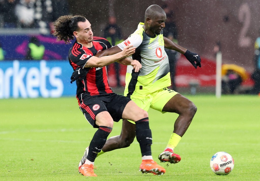 Die Schlussphase hat es in sich: In der 90. köpft Schlotterbeck nach Ecke an die Latte, Seitfallzieher Silva, drüber. Danach landet ein Klärungsversuch von Ryerson bei Dahoud. Linksschuss, abgefälscht, Innenpfosten, drin. Verdammt. Die Eintracht dreht das Spiel.