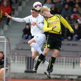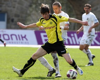 Doch dann endlich die Erlösung: Hille vertändelte im Mittelfeld den Ball anstatt den mitgelaufenen Piossek anzuspielen. Mit vereinten Kräften erkämpften sich die Beiden aber den Ball sofort zurück. Piossek dribbelte in den Strafraum und schickte den durchgelaufenen Hille steil. Dieser bewies Nervenstärke und netzte eiskalt rechts oben ein. So ein abgeklärtes Offensivspiel gab es von Dortmunds Zweitvertretung lange nicht mehr zu sehen.