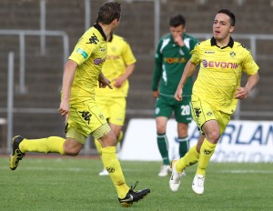 Bei den Borussen blieb „der Fette mit die 6“ leider im Stall. Hoffentlich bekommt Florian Kringe noch einen Einsatz in schwarzgelb bevor er sich von seinem Lieblingsklub verabschieden muss. Zudem fehlte Daniel Ginczek, aber mit der Dreierreihe Kullmann, Boztepe, Le Tallec hinter der einzigen Spitze Stiepermann war die Offensive trotzdem ziemlich prominent besetzt.