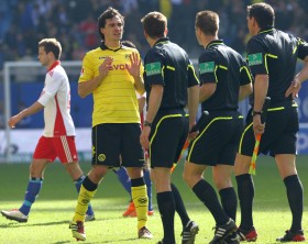 Drei Minuten später die nächste Fehlentscheidung, diesmal jedoch auf der Gegenseite: Mats Hummels holzte Mladen Petric in die Beine, es blieb nur der Elfmeterpfiff. Zurecht beklagte sich Hummels jedoch über den Schiedsrichter, der ihm bei der Frage nach der vorherigen Abseitssituation eines Gegenspielers direkt die gelbe Karte angedroht hatte – ein klärendes Gespräch zur Halbzeitpause sorgte für einen netteren Umgang in der zweiten Hälfte, da war das 1:0 jedoch schon gefallen: Ruud van Nistelrooy hatte den Ellfmeter unhaltbar für Roman Weidenfeller in die rechte untere Ecke geschossen. Beinahe hätte Ben-Hatira eine Minute später mit einem Fernschuss alles klar machen können – Weidenfeller war weit vor sein Tor herausgekommen, konnte das 30-Meter-Pfund aber doch noch über die Latte abwehren. Gut gemacht und Glück gehabt.