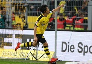 Doch dann war es endlich soweit. Gonzo Castro spielte Doppelpass mit Ginter und schickte ihn mit einem wunderbaren Steilpass auf die Reise, den der so gerade noch vor der Auslinie erlaufen konnte. Das neugewonnene Selbstvertrauen des Mannes, der inzwischen dauerhaft die rechte Außenbahn von Lukasz Piszczek erobert zu haben scheint, fand seinen Ausdruck in einer präzisen Flanke auf den Kopf von Shinji Kagawa und der Japaner untermauerte mit seinem Treffer den Status als Derbyheld. Wieso der kleine Japaner allerdings am langen Eck derart ungedeckt zum Kopfball kommen konnte, war auch Bonusspiel-Breitenreiter nach dem Spiel unerklärlich. Derbyheld Shinji nutzte die Nähe zum Gästeblock zu einem ausgiebigen Jubellauf.