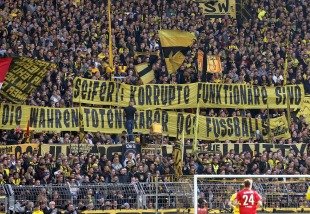 Kasten. Die FC Fans erinnerten dann nochmal an den Mäzen von SAP und dessen Mutter. Ob das bei einem Spiel in Dortmund wirklich eine Rolle spielen muss, ist natürlich fraglich. Aber vermutlich ging es eher darum, die Sinnlosigkeit der DFB-Sportgerichtsbarkeit und deren neue Tendenz zur Verfolgung von unliebsamen Fangesängen zu demonstrieren. Ob diese Gesänge Konsequenzen haben werden, bleibt abzuwarten. Lächerlich wäre es auf jeden Fall.