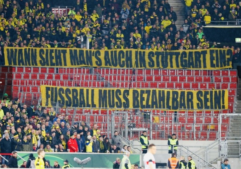 Die Cannstatter Kurve wartet auf Fußballdortmund. Ich mag sie nicht, diese Schwaben. Spätestens nach äußerst ungemütlichen Zickereien mit Menschen, die diese „nett hier, aber waren sie schon mal in Baden-Württemberg?“ - Aufkleber verteilen, aber bei einer Protestaktion gegen Ticketpreise auf ihren bezahlten Stadionbesuch und ihren gebuchten Platz bestehen. Lieb‘ ich ja. Nicht. Dass die Preise auch in diesem Jahr wieder „ganz großes Tennis“ sind - 20,93€, um genau zu sein - lässt mich mein #keinzwannifürnsteher Shirt schnell enger ziehen.