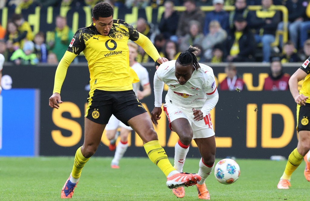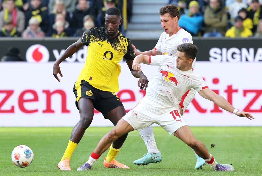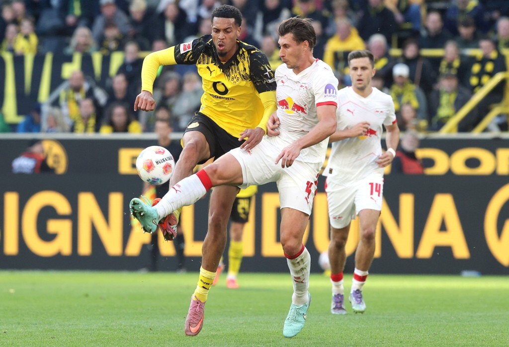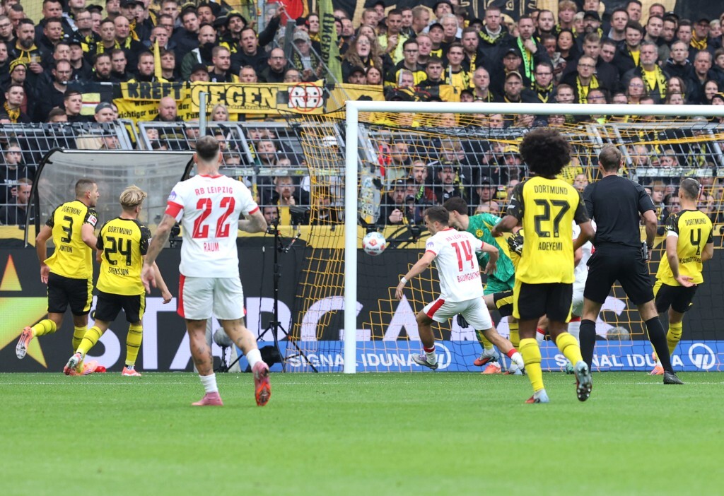 Die Schwarzgelben versuchten, sich vom frühen Rückschlag nicht vollständig beeindrucken zu lassen. Man blieb weiter dran, vor allem Adeyemi auf der rechten Seite wurde immer wieder als Anspielstation gesucht. Gleichzeitig leistete man sich im Spielaufbau zu viele Ungenauigkeiten. Fehlpässe häuften sich und ein konsequentes Angriffsspiel blieb aus. Stattdessen lief man immer wieder Kontern der Leipziger hinterher. In der 23. Minute dann endlich die erste Erlösung. Bensebainis hoher Ball fand im Strafraum erst Beier, dann Guirassy. Letzterer leitete den Ball dicht bedrängt auf Couto weiter, dessen Abschluss von Baumgartner abgefälscht zum 1:1 ins Tor flog. Endlich.