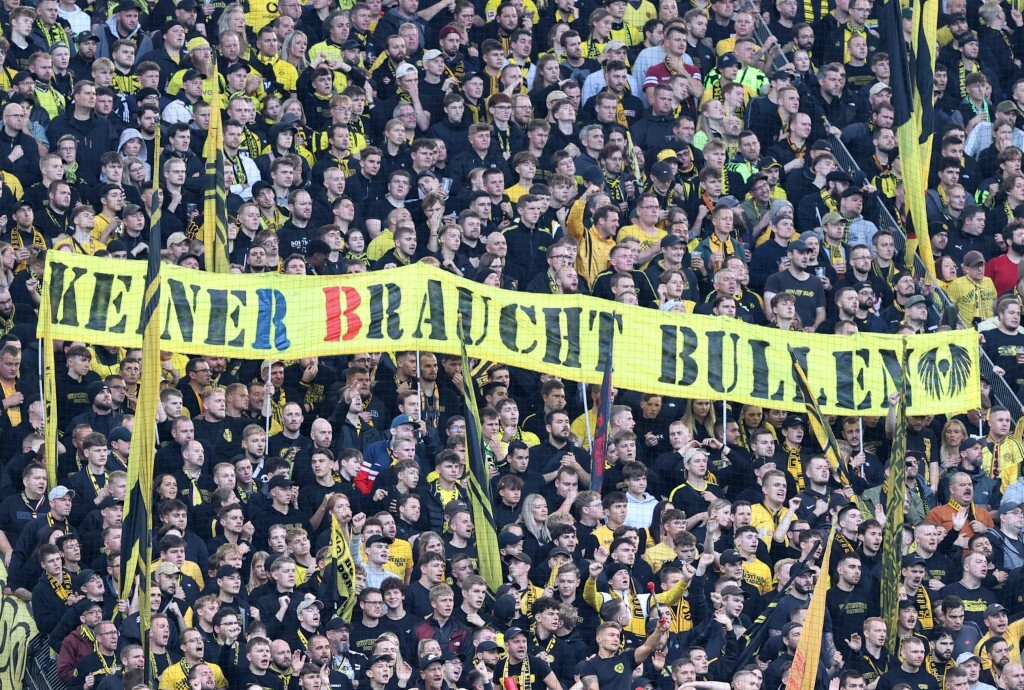 Zugegeben, in einer Welt voller Krisen, Kulturkämpfe und Kriege braucht es nicht noch mehr Hass. Doch dass ein Spiel gegen das Konstrukt aus Leipzig zu einer harmlosen Plätschernummer verkommt, ist ernüchternd. Flaschenwerfen muss wirklich nicht sein – da sind wir uns einig. Und ein „Scheiß Red Bull“ war durchaus zu vernehmen. Abgesehen von diesen kleinen Scharmützeln wirkte es, als hätte man sich längst mit der Existenz von RBL abgefunden – und sogar aneinander gewöhnt. So sehr, dass man in Leipzig auf die Idee kam, eine überdimensionale Blockfahne über dem gesamten Gästeblock sei das passende Accessoire, um sich selbst zu feiern – „15 Jahre“.