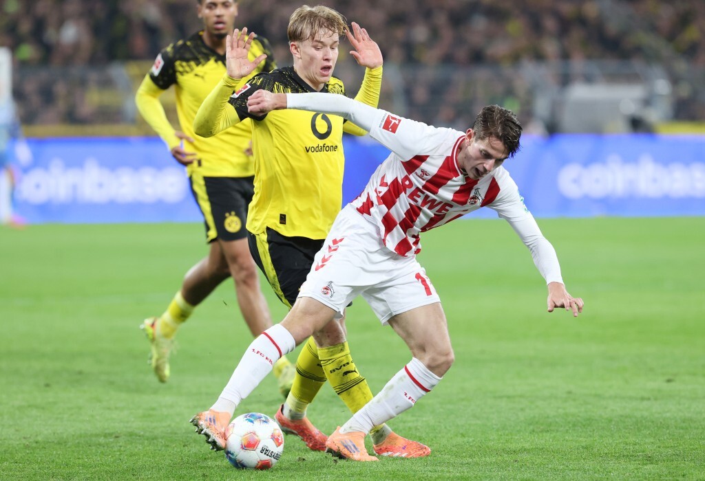 Danach dauerte es etwas, bevor es das nächste Highlight zu sehen gab. Zwar hatte der BVB das Spiel im Griff und machte einen insgesamt guten Eindruck (einzig Anton fiel in der ersten Halbzeit immer mal wieder negativ auf), brachte aber auch nicht allzu viel zustande. Außer ein paar spektakuläre Verteidigungslücken. Während die ersten zwei Male der Kölner Spieler gerade noch rechtzeitig abgefangen werden konnte, lief er beim dritten Mal alleine auf Kobel zu. Der darf sich seinen Teil beanspruchen an der Tatsache, dass dies kein Tor geworden ist, der größte Dank geht allerdings an den Kölner Stürmer, der den Ball neben den Pfosten setzte. Das war sie dann auch, die größte und beinahe auch letzte Chance der Gäste.